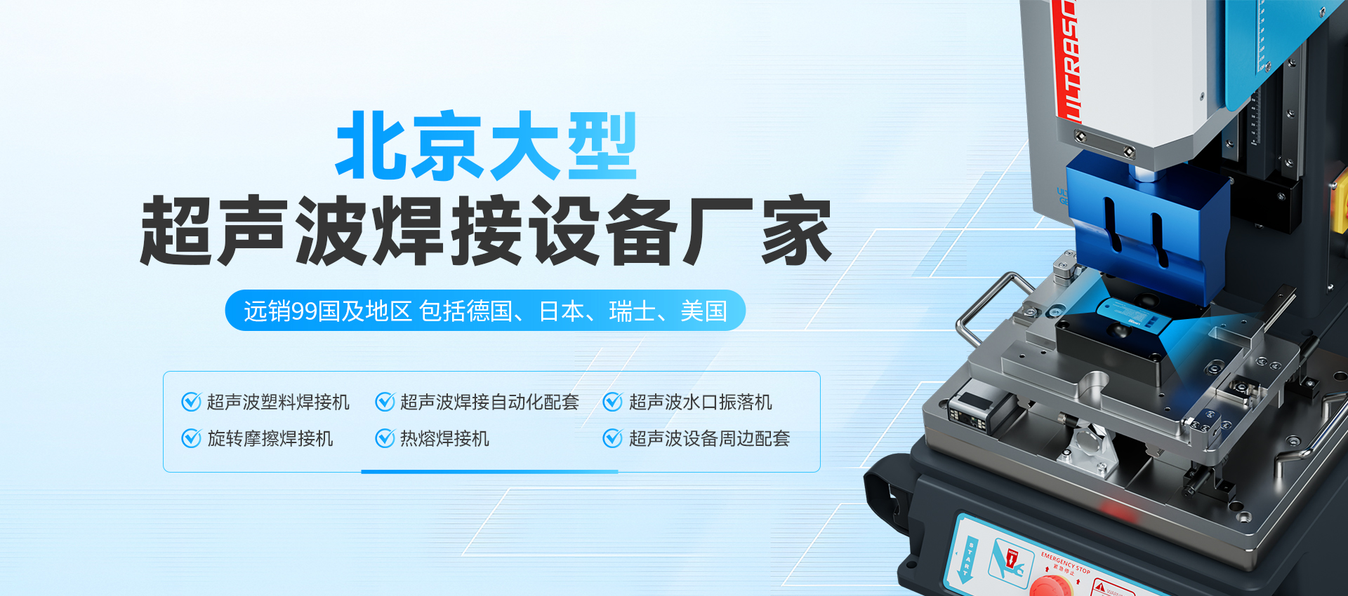 隨著航天航空技術的不斷發展,對零部件的制造精度、質量和可靠性要求越來越高。焊接技術作為航天航空制造中的關鍵技術之一,對于飛行器的結構強度、密封性和安全性起著至關重要的作用。北京作為制造業發達的地區,超聲波塑焊機在航天航空領域的應用也逐漸受到關注。北京超聲波塑焊機 以其高效、精準、環保等優勢,為航天航空零部件的焊接提供了新的解決方案。  北京超聲波塑焊機的優勢焊接精度高:北京超聲
